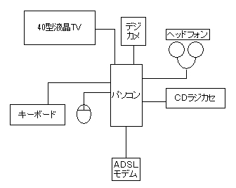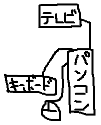 どうもうちの親が、甥?(自分の兄弟の子供ってそうなるんでしたっけ) から、カメラとマイクを買って、TV電話しようと言われたらしく どうすればいいのかと、こちらに話が来ましたので、いろいろ考えて とりあえず、ほぼ0円でできそうだったので、やったのが左の図。 やってる途中で、これはひどい、と思いつつも無事接続できました。 カメラはデジカメ、音声はCDラジカセへ出力、マイクの変わりに ヘッドフォンを使用するという、なんて素敵設定。(笑) パソコンも以前のあまりで、モニターは液晶テレビを使いました。 大きい画面でできるのはいいのですが、ちょっと離れると文字が見づらいですね...。 ちなみに、ぼく4さいバージョンで最初やっていたのですが これはひどい、ということで却下になりました。(笑) しかし、初めてSkypeをやってみましたが あれが無料でできるとは、これからの電話はどうなっていくのかと 今更ですが思いました...。 今回なぜか、リソース不足でサウンドドライバーが、うまく入らず かなり苦戦して、適当にしたら入ったのは秘密。