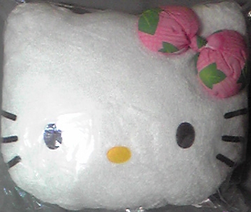なかなか大きいクッションです。 ゲームセンターの景品で、がんばって取りました。(笑) ちなみに、今週はハローキティ特集で お送りいたしますので、ご了承ください。