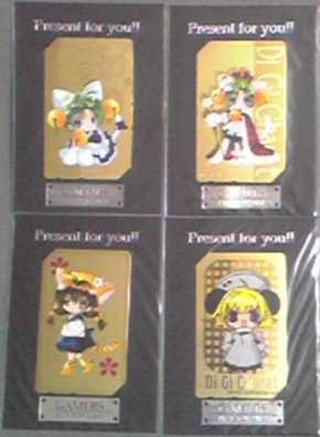 Piaキャロットへようこそ2紙袋。 どこでもらってきましたっけ? しかも2枚もあるし。 ILLUSIONの華の悲鳴の紙袋もでてきました。 欲しい人にはプレゼント。 K-BOOKS秋葉原新館オープン記念下敷き。 小池定路イラスト。 週末の過ごし方を知ってる人には、すぐに分かるかと。 週末の過ごし方は、なんとMSXに移植されました。 DISC8枚だそうです。 MSX版がどんな感じか、やってみたいかも。 Windows版を持ってましたが、売ってしまいました。 ハイパーヨーヨー。 最近またCMをやってたりして、また流行らせようということか。 買ったのは、かなり前ですが、スペシャルセットとか 安売りしてたので買ったけど、未開封でした...。 右下の2個は、ファイアーボールとハイパーレーダー。 プレイステーション非売品メモリーカード。 なんかでもらったように思いますが、記憶にないもの。 調べてもいまいちわかりませんでした。 オークションの出品で当選という単語があったので なにかの抽選で当選したものかもしれません。 Ninja者LD購入特典、声優の写真。 左より、中島麻実、宮嶋ひとみ、小西寛子。 小西寛子以外知りません。(笑) ちなみに、小西寛子には、もう、ふれてはいけないのでしょうか...?