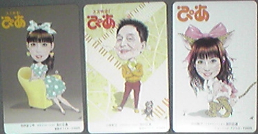 ジャンプのテレホンカード。 バスタードとか、オレンジロードとか、なんて古い。 たしか、何冊か買って応募券を貼って応募するやつだったと 思うので、これのためにジャンプをいっぱい買ったような...? オレンジカード。 南野陽子ですよ。 JRってまだ、オレンジカード使えましたっけ。 ふみカード。 ハローキティ版があると聞いたので買いました。