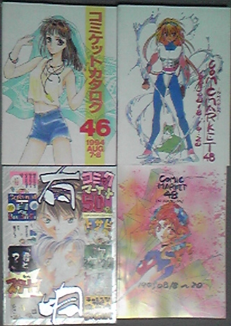 コミケ46、48、50のカタログ。 コミケに行く人ってカタログまで保存してるんですかねー? しかし、何年前ですか、古すぎます。(笑) 48とか、インデックスとサークル紹介と分かれてますね。 さすがに、いらないと思うので、処分予定。 ワンダーフェスティバルカタログ。 ワンフェスは、これ1回しか行ったことがないです。 完成品はもちろん高いですし、自分で削ったり 色を塗ったりとかはできませんので、なにも 買わずに、眺めるだけでした。 パソケットカタログ。 こちらは、コミケなどと違って月1回か数カ月に1回くらいの 割合で行われていたと思いますので、行った回数が多いと 思いましたが、残っていたカタログは、これだけでした。 ところで、パソケットって、まだ続いてるんでしょうか? 今では、同人誌や同人ソフトを扱うお店が増えてきたので ある程度は手に入りますからねー。 たしかパソケットで買ったソフト。 CUT A DASH に CHARMING SOFTWARE だけ集めてみました。 昔はこのような形でフロッピーの中に画像が入っていると いうもので、色も256色とかでした。 今だとフロッピーにはフルカラーの画像1枚入るかどうか。(笑) ちなみに、この当時はCUT A DASH や CHARMING SOFTWARE が有名だとは知りませんでした。