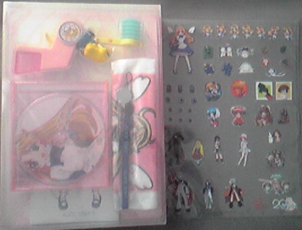 ままにょにょ+特典。 DALK外伝+特典。 今回は、送ってきた箱なども 一緒に撮ってみました。 見ての通り、ゲーム及び特典は 開封されておりません...。 大悪司+特典。 CDもあったけど、なんといっても この特典のゲーム。 よくこんなものを作ったなーと。 まあ、やってないけど...。 20世紀アリス+特典。 この特典のピコポンハンマーが 欲しかったんです! 開けてないから使ってないけどね! はじめてのおいしゃさん+特典。 たしか、テレホンカードもあったはず。 おるすばんは遊んだけど、こっちは 開けてないんですねー...。 VIPER RSR。 初回特典セル画同梱版となっていますが 開けてないから、何が入っているか不明...。 LOVERS+特典。 テレホンカードが2枚も入ってました。 テレホンカード2枚、またはカード2枚を持って イベントに行くと、先着でテレホンカードをプレゼント とか書いてありましたが、初めて知りました...。 まあ、イベントには行けないでしょうが...。 ちなみに、この送ってきた箱すら開けてないソフト。 これはエスカレイヤーです...。 すでに4本もアリスソフトのゲームがでてきているというのに アリスソフト様、本当にごめんなさい...。 まだ、他メーカーで2、3本あったかも...。
